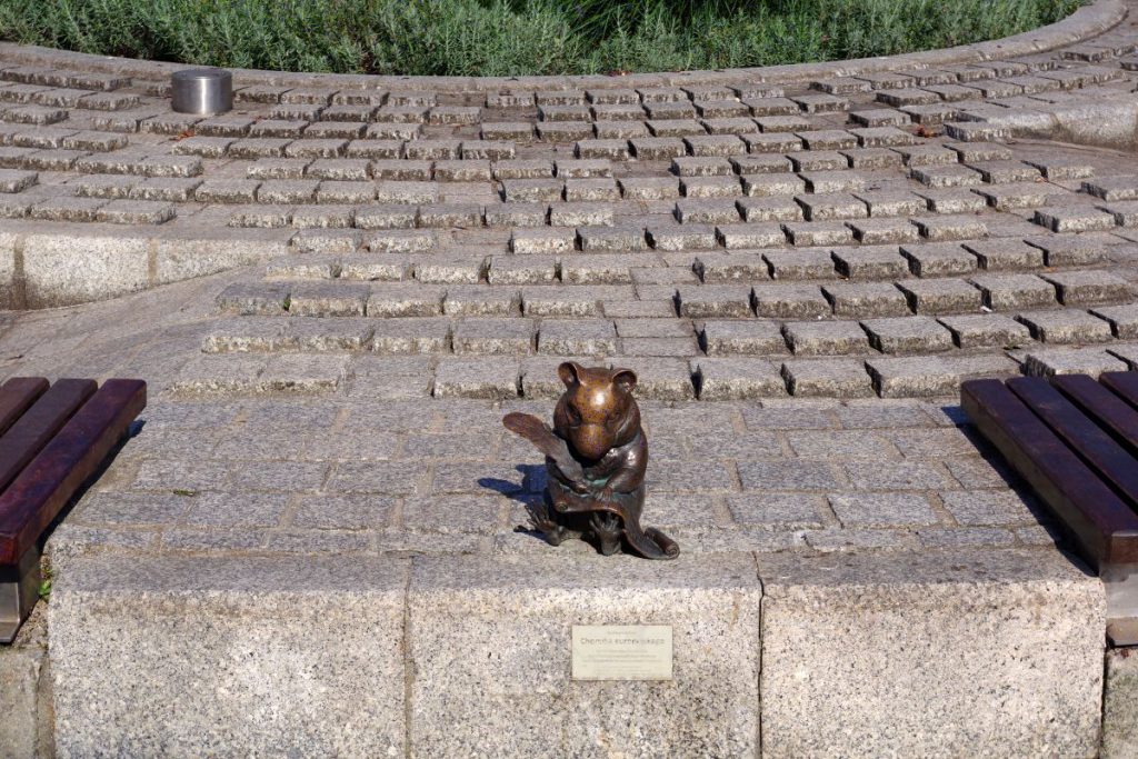 • Chomik przy kapsule czasu z klepsydrą — refleksję nad przeszłością i przyszłością miasta.